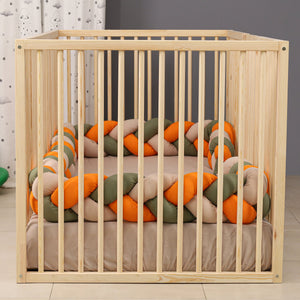 Our Era Montessori floor bed combines floor‐level access with 38.5″ high cylindrical railings and an integrated gate, offering both freedom and extra safety for toddlers. Crafted from solid wood, this twin‐size frame (mattress sold separately) blends seamlessly into any modern children’s room.